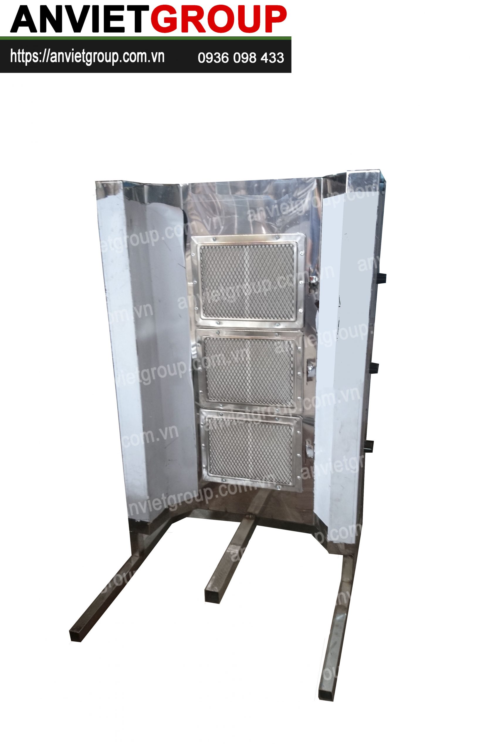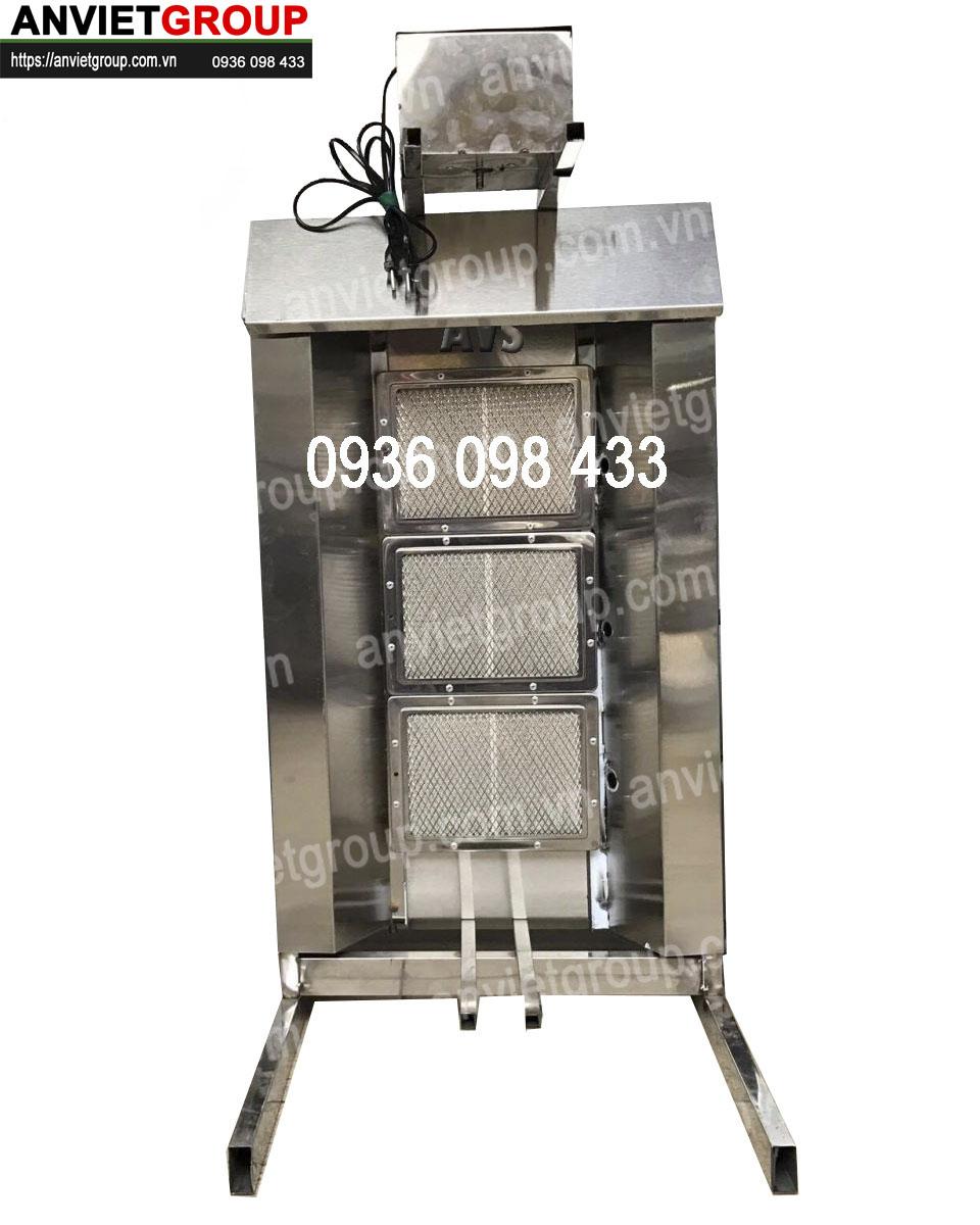 Lò nướng thịt kebab 3 buồng đốt thích hợp với những xe đẩy bán bánh mì kích thước vừa và lớn như các dòng xe 1m5, 1m6, 1m8, 2m….
