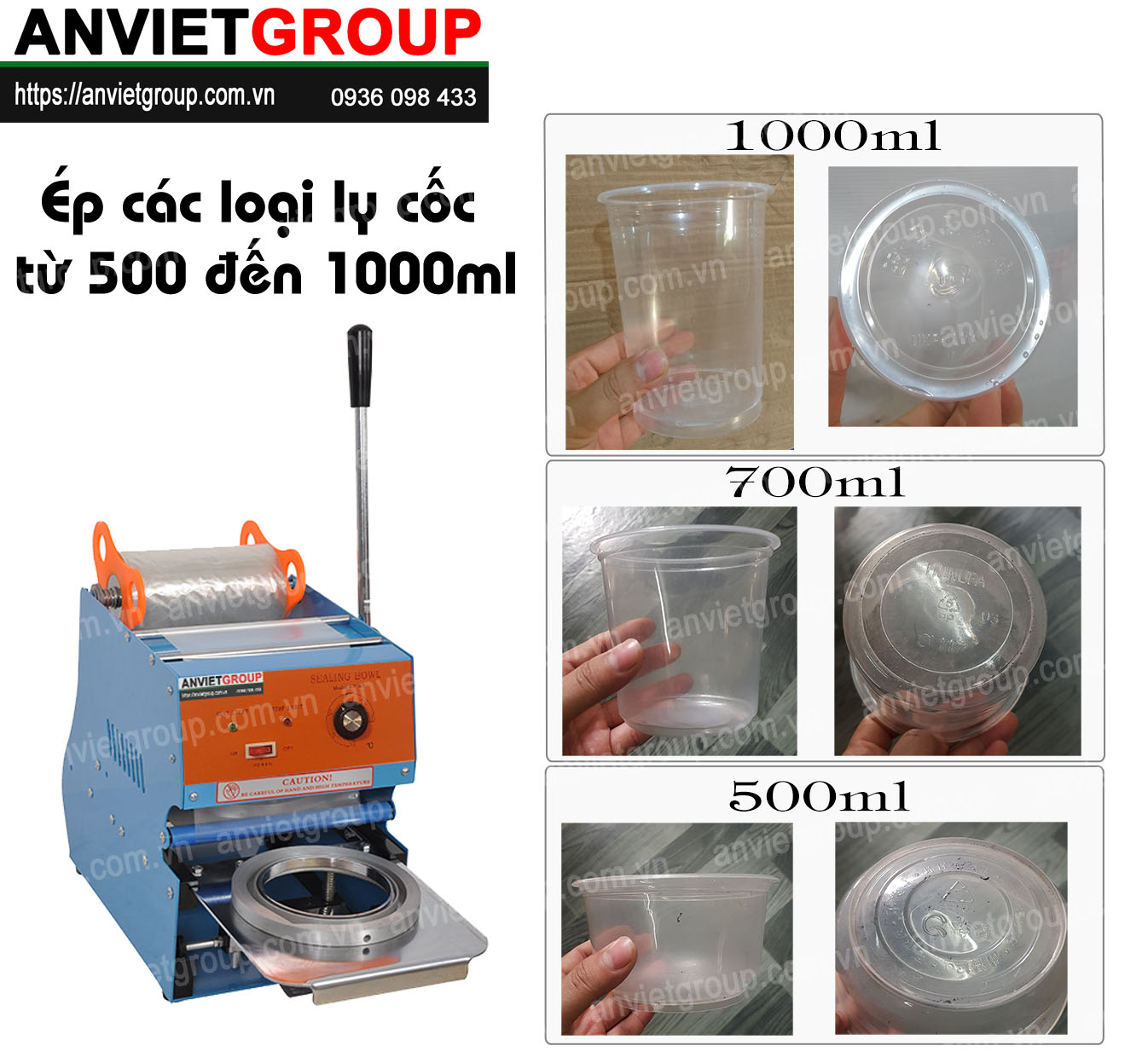 Để đáp ứng nhu cầu liên tục thay đổi của thị trường đối với những sản phẩm mới đang thịnh hành như Trà bí đao khổng lồ, Trà chanh khổng lồ, Trà tắc khổng lồ, Trà sữa khổng lồ, Nước mía khổng lồ, nước ép khổng lồ…. An Việt đã cho ra đời sản phẩm mới Máy đóng đậy ép dập nắp miệng ly cốc khổng lồ Eton W2B An Việt