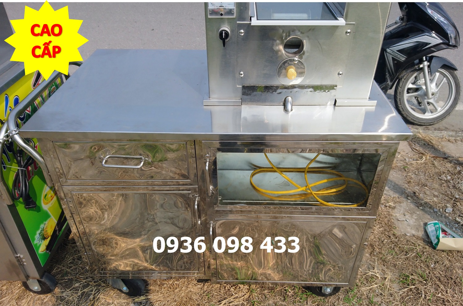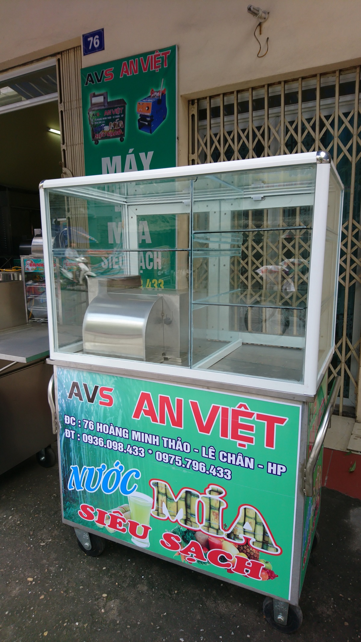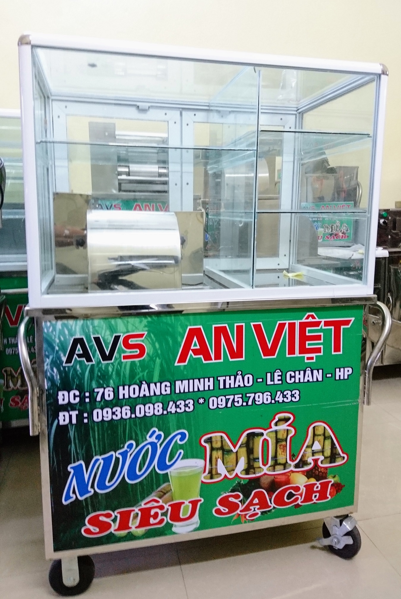 – Xe nước mía có kính phù hợp các quán bán ven đường để phòng tránh bụi vào trong mía.