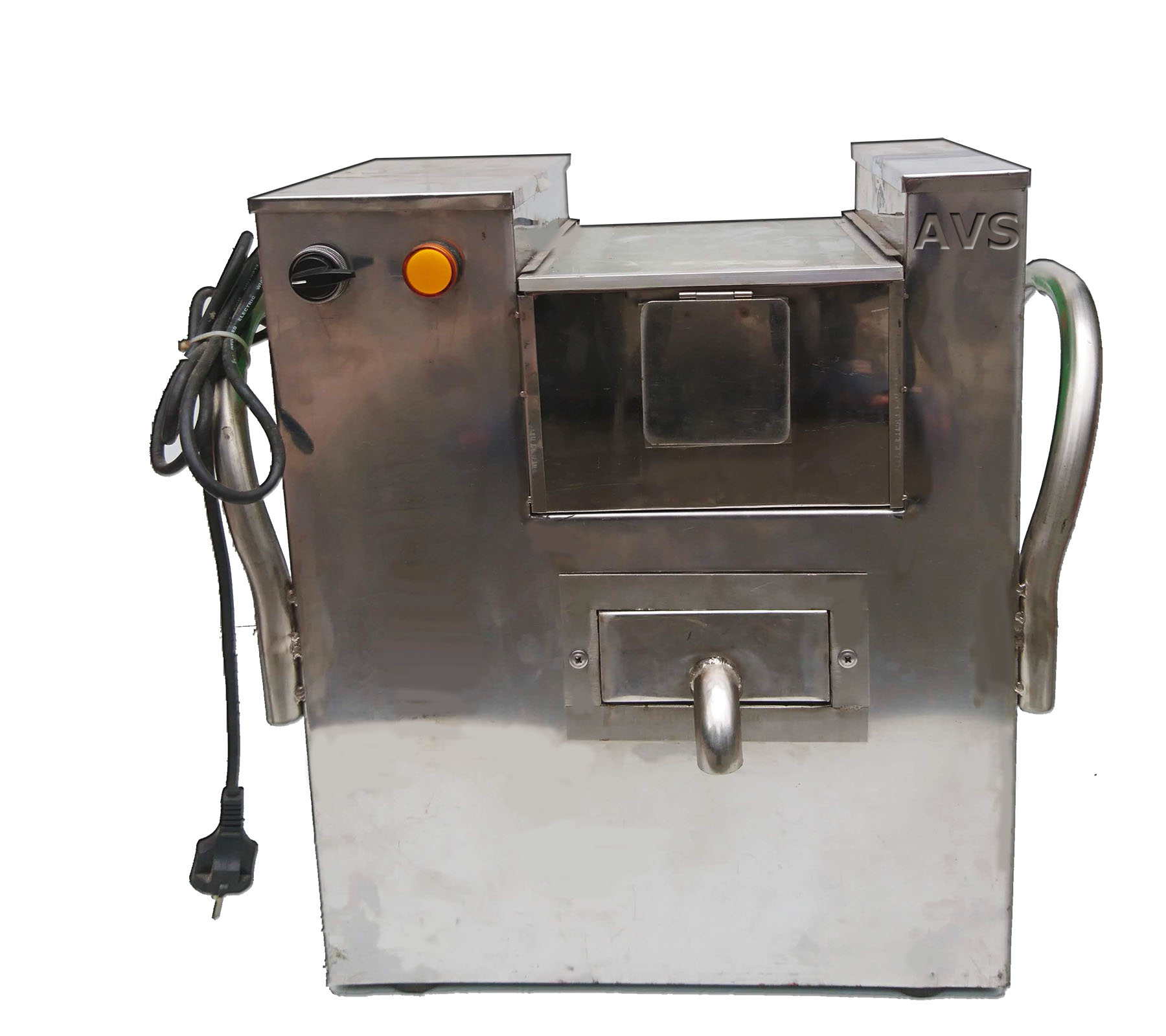 - Phía sau máy là lỗ thoát bã mía ra ngoài.