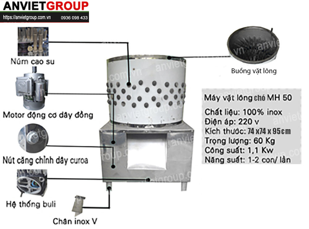 – Hệ thống khung, trục của máy nhổ lông chó được cấu tạo bằng inox V nên tuổi thọ cao hơn so với các máy khác trên thị trường.